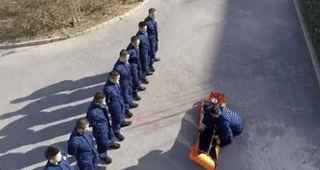 本来正在跳操的消防队员