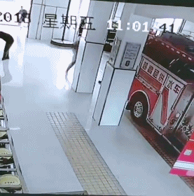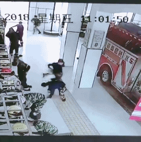 消防员突然匆忙转身大步跑走