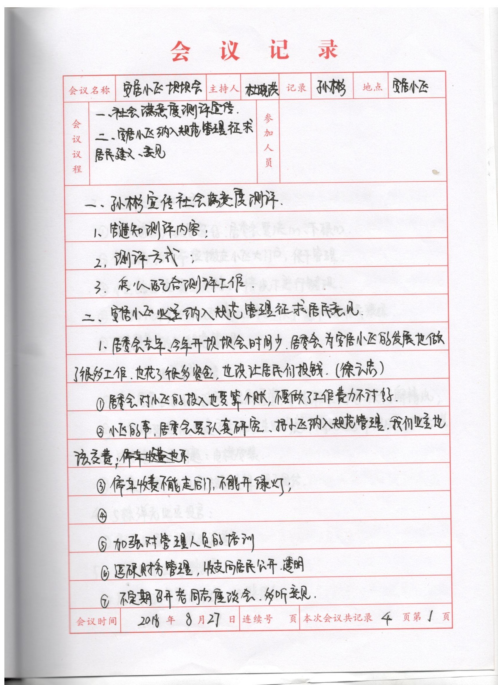 安居小区建成后,由民悦物业公司管理服务小区,但因后续物业费收费率较低,无法支付公司员工工资,遂退出该小区,造成该小区一直无物业公司进住。华严社区为创建平安小区,规范该小区车辆乱停乱放、车辆占用生命消防通道,居民出行环境差等诸多问题,于8月27日,通过居民“一事一议”的方式在安居小区召开了坝坝会,通过填表征集意见,80%以上业主同意对该小区进行规范化管理,规范该小区车辆停放秩序。华严社区将严格按照“一事一议”的要求对该小区路面及活动区域进行改造升级纳入封闭式规范管理,并在合理的位置设置公用消防栓,还居民一个和谐、舒适、优美的环境。现该项目已进入设计招标中。
