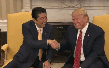 特朗普握手神功跃上世界舞台,日本首相安倍功不可没。