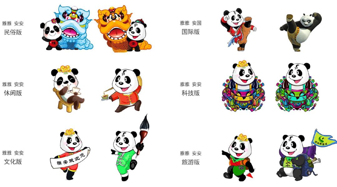 城市文旅吉祥物—雅雅、安安:创意设计吉祥物,是文旅城市营销推广的重要手段。雅安,从大熊猫这一具有国民吸引力的文旅要素切入,整合雅茶、雅鱼、雅竹等地方本土产业元素以及桂花等城市生活要素。