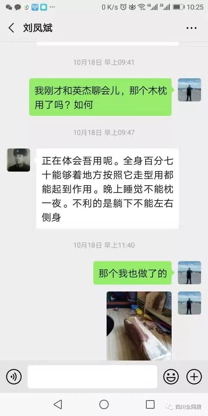 “木枕头,不服软,硬对硬,对骨刺,是克星。村长何怀全家属用了,村民康平周家属用了,都说效果好。”老邓说,“如果你不信呀,可以打他们的电话问一问,或者看下徐家邓家祠村干群心连心交流群里的人咋个说。”