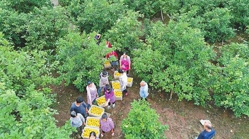Dozens of workers pick andpack lemons. Source: Anyue Publicity Department