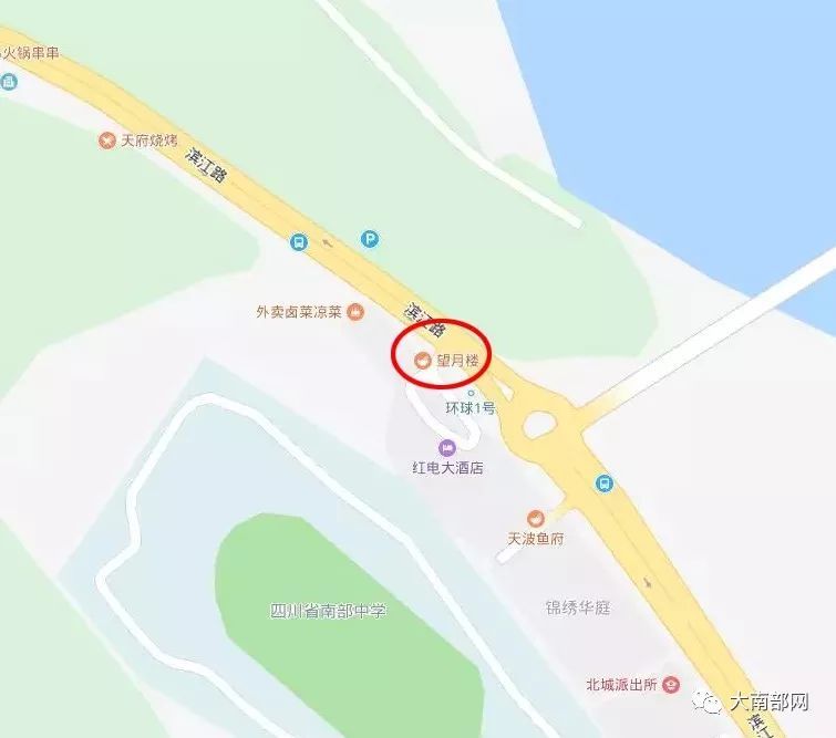 由于近年来南部中学学生出行十分不便,经县政府相关人员商议征收北环路(前烧烤摊)至红岩子电站红电大酒店(望月楼)附近土地用于建设南部中学东大门。2020年9月6日,南部县红电大酒店(望月楼)正式被拆。
