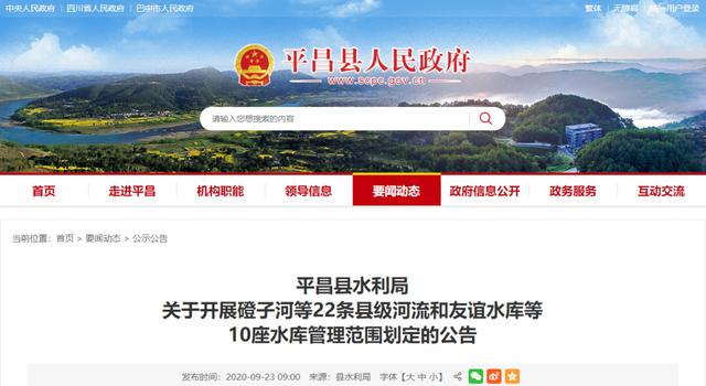 [民生杂谈] 最新公告 | 关于平昌22条县级河流、10座水库…