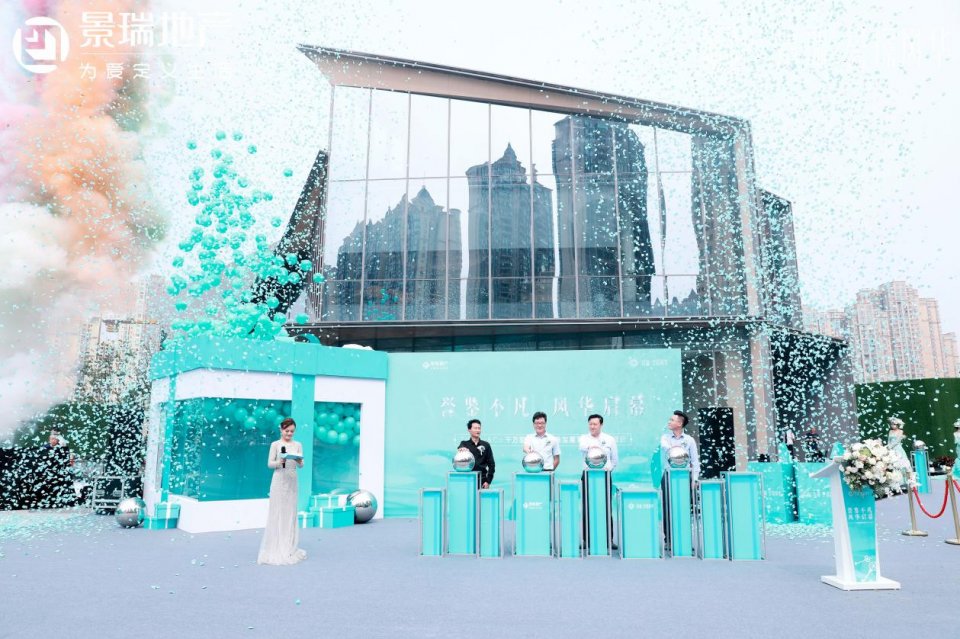 在现场来宾的共同见证下,贾智杰先生、陈辉先生、四川春秋集团董事长冉世春、景瑞地产成渝公司成都营销总监彭跃飞先生共同上台揭幕,宣告营销中心盛大开放。