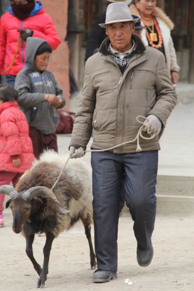 横贯夏河城主街的尽头,便是著名的拉卜楞寺,每天熙熙攘攘的人群涌向拉卜楞寺朝拜,夹杂在人群中时不时会有头系红布条,身披长毛的山羊跟随着朝拜人的脚步前行,人们总会拿出备好的青稞糍粑喂食他们,人与羊显得和谐亲密,一切是那么自然。这些羊被称为“神羊”,是专为神而放生的,这就是藏区的“热拉”—放生羊。