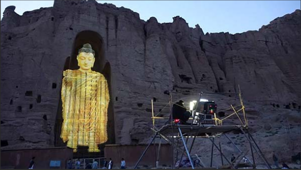 2015年,来自中国的张昕宇和梁红夫妇及其侣行团队,利用先进的建筑投影技术,成功对53米高的大佛进行了光影还原,并以此方式向中阿两国友谊致敬。