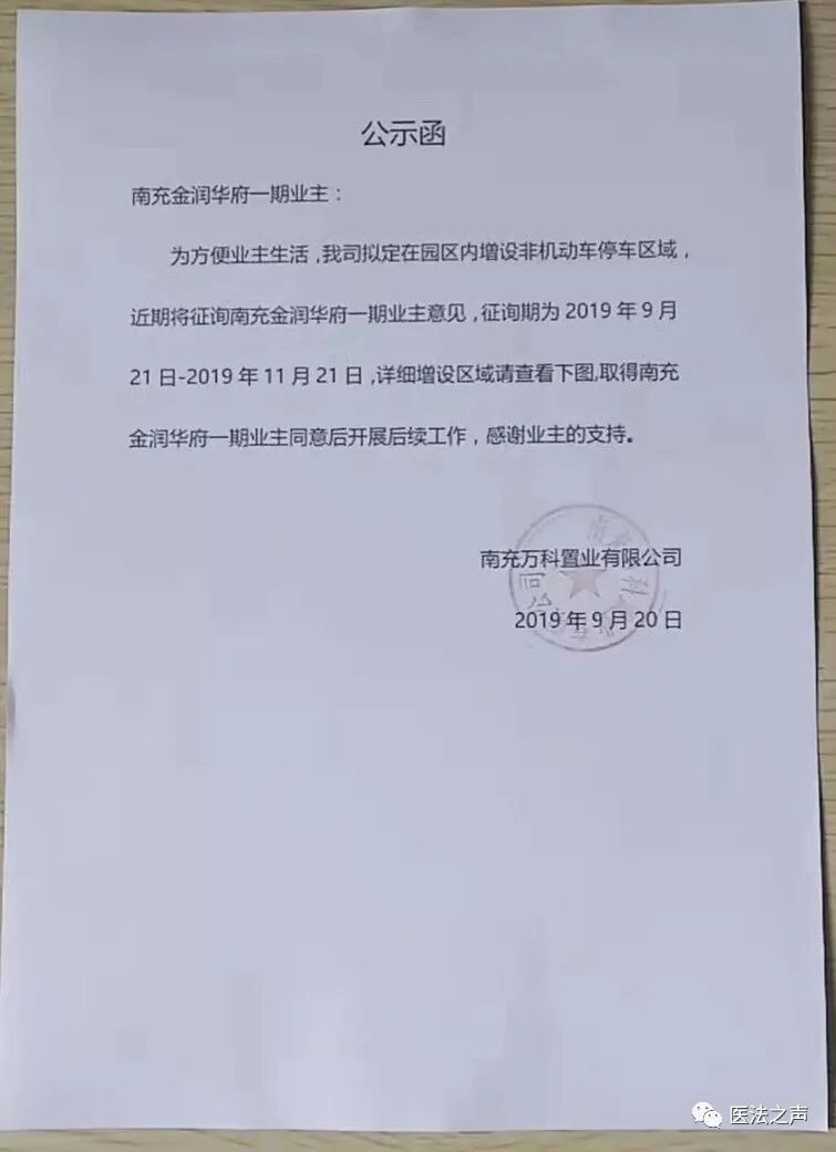各位友邻:关于当前大家关注, 社区对一期规划设置非机动车停放区域是否应该占用已经绿化区域的问题,大家为维护业主共同利益,积极行动,建言献策,体现了主人翁的热情和激情 ,应该为我们一期业主点赞!我有以下几点看法和意见,与大家交流  ,供参考:一是,引起本次事件的责任主体是万科开发商。它应该对一期全体业主承担相应责任。因为,假如原来规划有非机动车位 ,它不修建,而改为绿化 ,又通过了竣工验收 ,那么,小区既定交付条件形成,且绿化不损害业主利益和公共利益,因此,于法于理,任何人不得随意改变现状。大家当初买房时 ,看中的也是小区的绿化环境质量。开发商与购房业主自始至今对当时小区绿化交付条件  ,双方一致认可。假若 要变更,必须首先符合规划 并经过法定审批允许变更;其次同时满足业主法定数量和比例同意变更。否则,开发商单方变更,就构成对业主的违约和侵权;二是 ,假如原来没有规划非机动车位,现在任何主体都无权改变现状 ,否则 ,构成对全体业主共有权的侵害;三是,要分清万科开发商和万科物业服务公司的不同主体及其责任。这有利于弄清主要矛盾和矛盾的主要方面。社区的公示函,笼统称“万科公司”  ,容易混淆责任。本次事件的麻烦,无疑是开发商的开发经营过失导致,现在为了避免自身损失,而转嫁给业主 !如果开发商为了好卖房子  ,原来给非机动车业主承诺 ,可以停放车在架空层 ,同时,当时售房又宣传小区内 人车分流 来吸引买房人,显然,开发商对所有购房人进行了虚假宣传和欺骗。万科物业后来允许非机动车停放架空层 ,到底是它们公司的自主行为还是开发商授意行为 ,物业自己不敢公开 ,应该自己担责。如果物业公司又说是业主自行停放,那么,物业一直允许停放,则是自己管理失职。四是,保留现状绿化环境  对全体业主都是永久利益保护  ,一定团结一致否定破坏绿化。至于非机动车位究竟该设置在哪?这是开发商的事  ,它肯定不能损害绝大多数业主利益和不能违背绝大多数业主意志,它可以在小区外与政府相关部门协调用地规划 ,进而方便业主生活。五是  ,客观评价物业公司。总体而言,万科物业管理在南充业界口碑是比较好的,当然,也存在做得不到位的,但是  ,瑕不掩瑜,业主要一点一点设法让他们做得更好。六是,我们既要消防安全,也要保障绿化。为了维护共同利益  和爱护家园,大家眼光长远,团结和谐,互相理解,好好出谋划策 。既然社区出面  ,这是好事   ,它毕竟是基层自治组织  ,大家可以多给社区表达诉求  。