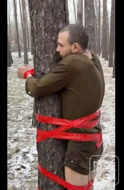 不愿意做炮灰的士兵,被指挥官脱掉外衣,绑在冰天雪地的树林里。