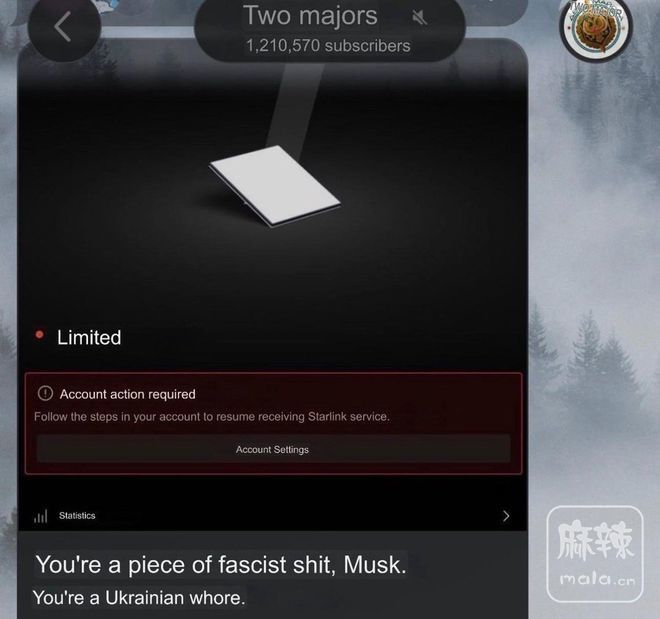马斯克管制俄罗斯军队使用星链系统后,俄军前线的各单位陷入恐慌,俄军宣传员开始咒骂马斯克是“法西斯混蛋”。