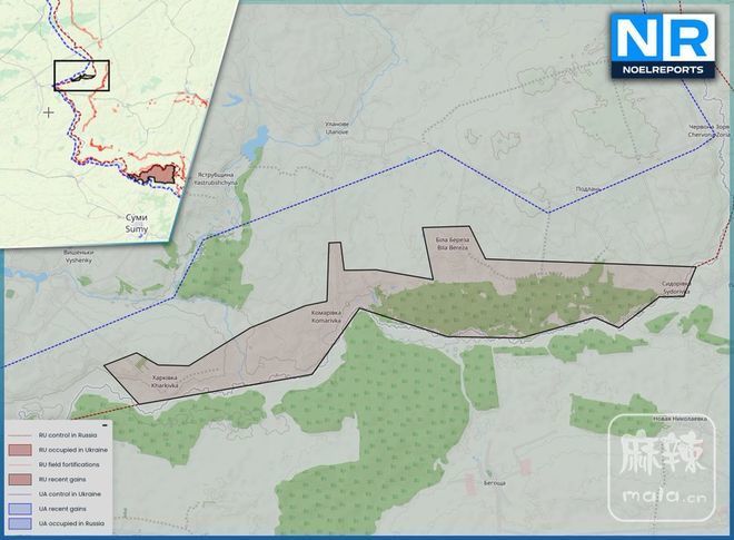苏梅方向,俄罗斯部队已越境进入该地区,占领了哈尔基夫卡、科马尔伊夫卡、比亚贝雷扎和谢多尔伊夫卡等边境村庄。这些村庄此前均处于灰色地带。