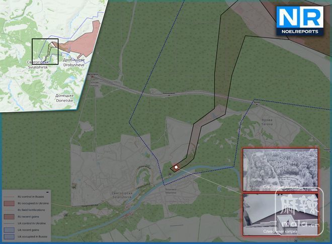 莱曼方向,俄罗斯部队已绕过亚罗瓦附近的乌克兰防御阵地,进入斯维亚托赫尔斯克东部郊区,并在小镇维雷梅纳戈达插上了他们的破布。