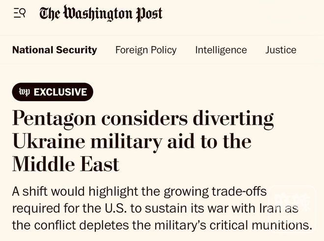 此前川普停止军事援助的举动本就令人失望,尤其是在整个《布达佩斯备忘录》的背景下,但这次的情况更加严重:欧洲国家实际上已将资金用于购买美国武器以支援乌克兰,而现在由于伊朗局势,这些武器的交付被搁置。