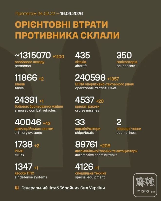 2026年4月16日,俄乌战争进入第1513天。