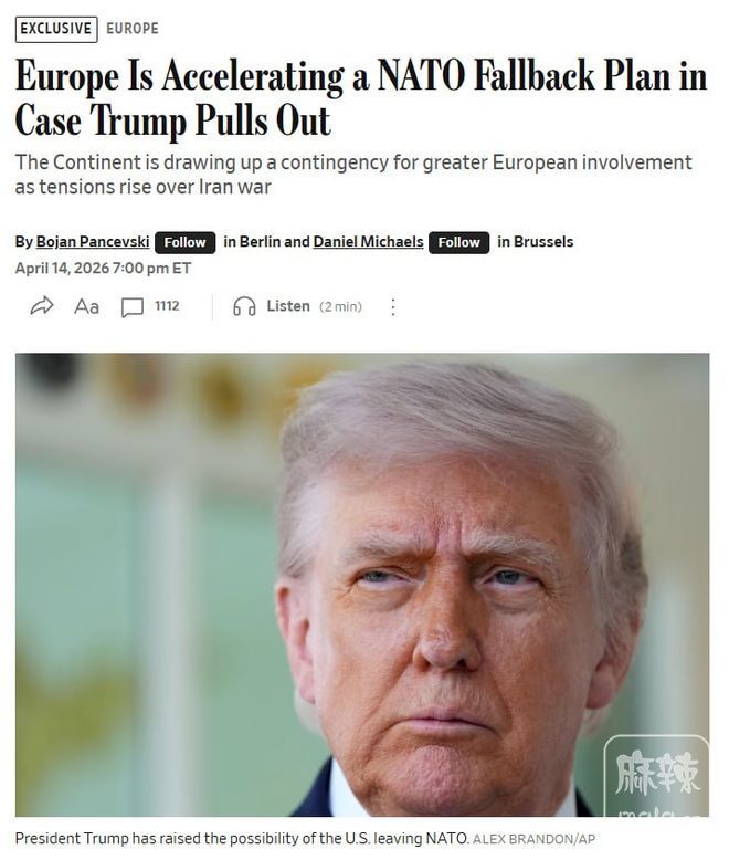 华尔街日报报道称,欧洲正在制定一项北约后备计划,以备美国退缩时使用——德国历史性的政策逆转开启了一个由英国、法国、波兰、北欧国家和加拿大组成的联盟。