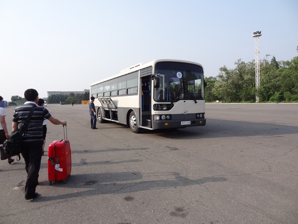 : 我们从北京飞往朝鲜搭乘的是高丽航空的图-204客机。机上午餐提供了咖喱鸡、炸鱼排、火腿、咸菜、面包,还有朝鲜自产的苹果味汽水。来迎接旅行团的是一辆韩国现代大巴车。车上非常干净,几乎可以说是一尘不染。中国游 ...