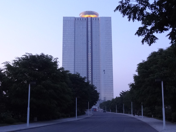 羊角岛酒店是平壤的两家特级酒店之一,专门接待外国游客、商人或政府官员。酒店坐落在大同江中心的羊角岛上,外国人未经允许不得离岛。