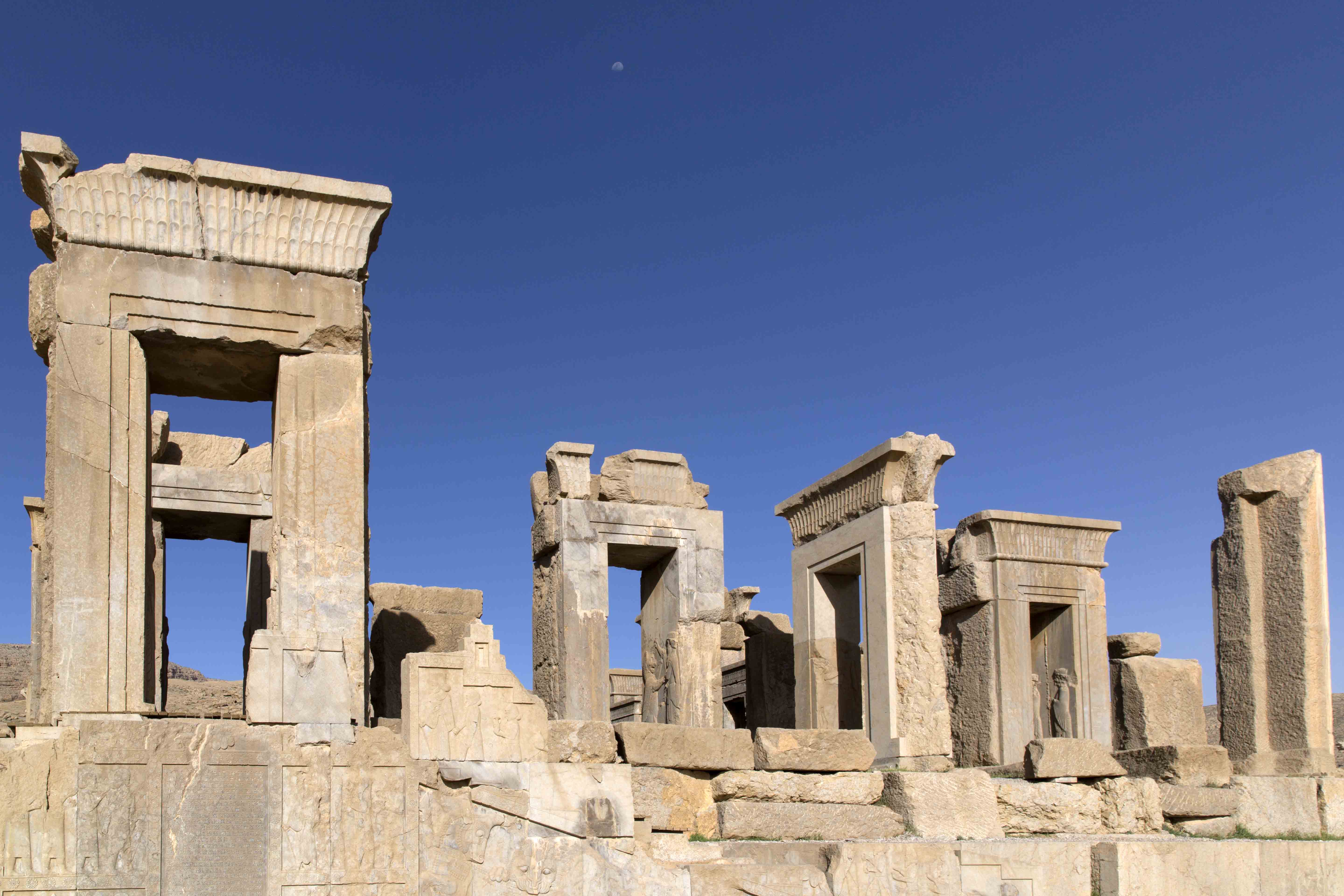 波斯波利斯,波斯阿契美尼德王朝的第二个都城。位于伊朗扎格罗斯山区的一盆地中。建于大流士一世(公元前522-前486年在位)时期,其遗址发现于设拉子东北52公里的塔赫特贾姆希德附近。城址东面依山,其余三面有围墙城墙依山势而高度不同。城内王宫建于石头台基上,主要建筑物包括大会厅、觐见厅、宫殿、宝库、储藏室等。全部建筑用暗灰色大石块建成,外表常饰以大理石。王宫西城墙北端有两处庞大的石头阶梯,其东边是国王薛西斯所建的四方之门。大会厅在城市中部西侧,边长83米,中央大厅和门厅用72根高20余米的大石柱支撑,柱顶石雕动物们从高高的石柱上跌落下来,散落四方,无声地诉说着一个文明古国的沧桑,那些柱顶的石雕动物曾经傲视寰宇,它曾是世界上最壮丽的石头宫殿,见证了古代波斯的盛大仪式。觐见厅在城市中部偏东,是有名的“百柱厅”。城西南角为阿尔塔薛西斯一世和薛西斯一世的王宫,东南角是宝库和营房。城中出土文物有浮雕、圆雕、石碑、金饰物、印章和泥板文书等。主要遗迹有大流士王的接见厅与百柱宫等。1979年联合国教科文组织将波斯波利斯作为文化遗产,列入《世界遗产名录》。在建筑风格上,一方面这些建筑的石柱柱身上刻着垂直的凹槽,枕头和柱底刻着精美的雕饰,另一方面宫殿装饰又采用了大量鲜亮的涂饰、精致的瓦片、纯金银、象牙以及大理石材料,这体现了古希腊与埃及艺术的融合。希腊人称这座都城为“波斯波利斯”,意思是“波斯之都”,伊朗人则称之为“塔赫特贾姆希德”,即“贾姆希德御座”。古老的波斯是众神的王国,贾姆希德是古代波斯神话中王的名字。这座显赫一时的都城规模宏大,始建于公元前522年,即大流士一世开始其统治的时候,前后共花费了60年的时间,历经三个朝代才得以完成。整个古城巧妙地利用地形,依山造势,将自然之地理形貌和人类之艺术精华完美的融汇在一起。