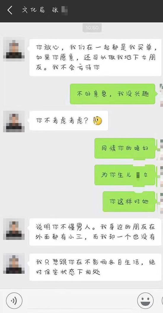 网传张某骚扰女子的微信截图  当地人士 供图
