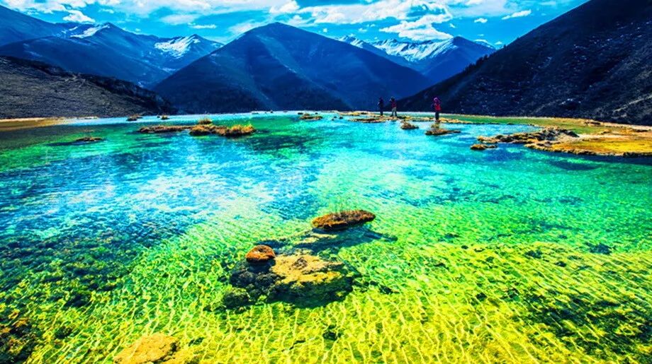 这里不仅有壮丽威严的雪山,晴空万里的蓝天,还有囊括万千的净水。
