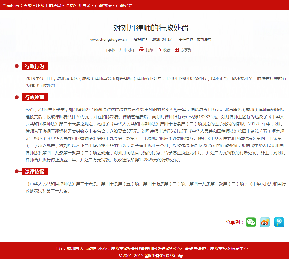 1:2015年12月30日,成都市律师协会依据《律师执业管理办法》第二十六条和《律师协会会员违规行为处分规则(试行)》第十一条的规定,针对被告人刘宁私自接受委托的行为,给予通报批评的行业处分。这不是行政执法水平问题,而是刘立勇同志手中拥有把握处罚尺度的权力,却由于记律规矩意识的淡薄,党性原则的缺失,逐渐变成了律师执业违法的保护伞,赤裸裸的违反了《中华人民共和国律师法》规定的情形,其渎职、失职、玩忽职守行为,致使诉求人投诉律师违法案件,历经五年之久诉求得不到有效处理。