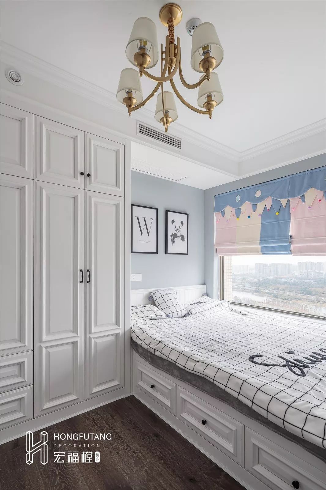 根据卧室的大小,定制合适的榻榻米一体柜,榻榻米兼做卧床使用,定制顶天立地衣柜,不仅好看还大大提高了卧室的空间利用率。