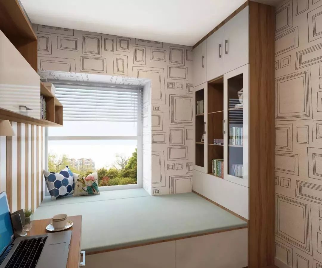 榻榻米+收纳设计,才能功能最大化利用,内侧设计翻板,有气撑功能的最好,放不常用的东西,因翻板不方便,不适合经常打开存取东西,介意的可以设计外侧收纳。