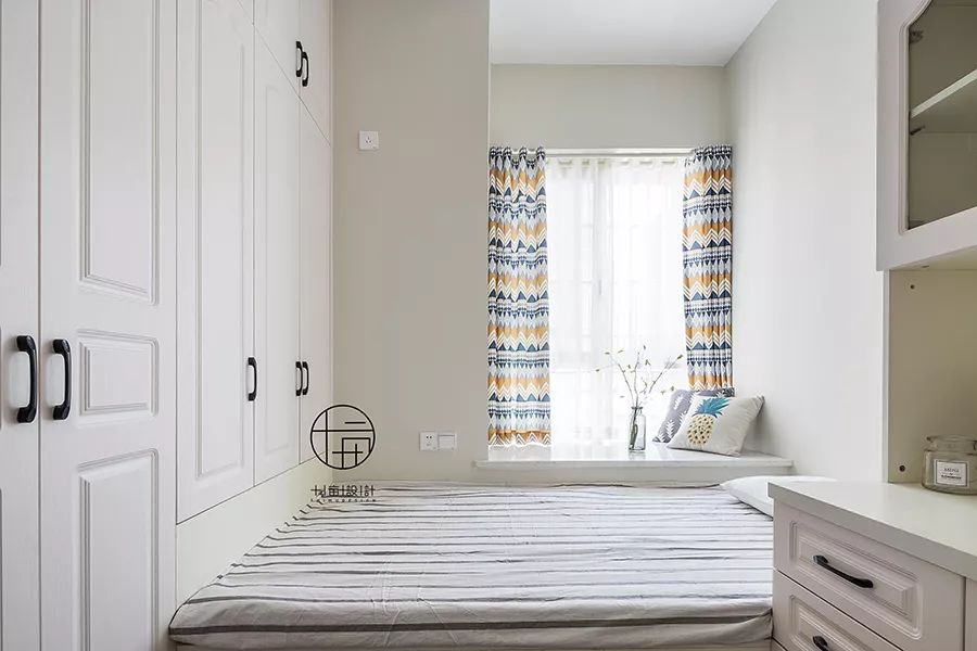 在飘窗装上榻榻米,不仅能提高家里的收纳,还能融合飘窗休闲+欣赏美景的功能,底部设计储物柜,实用性更强。