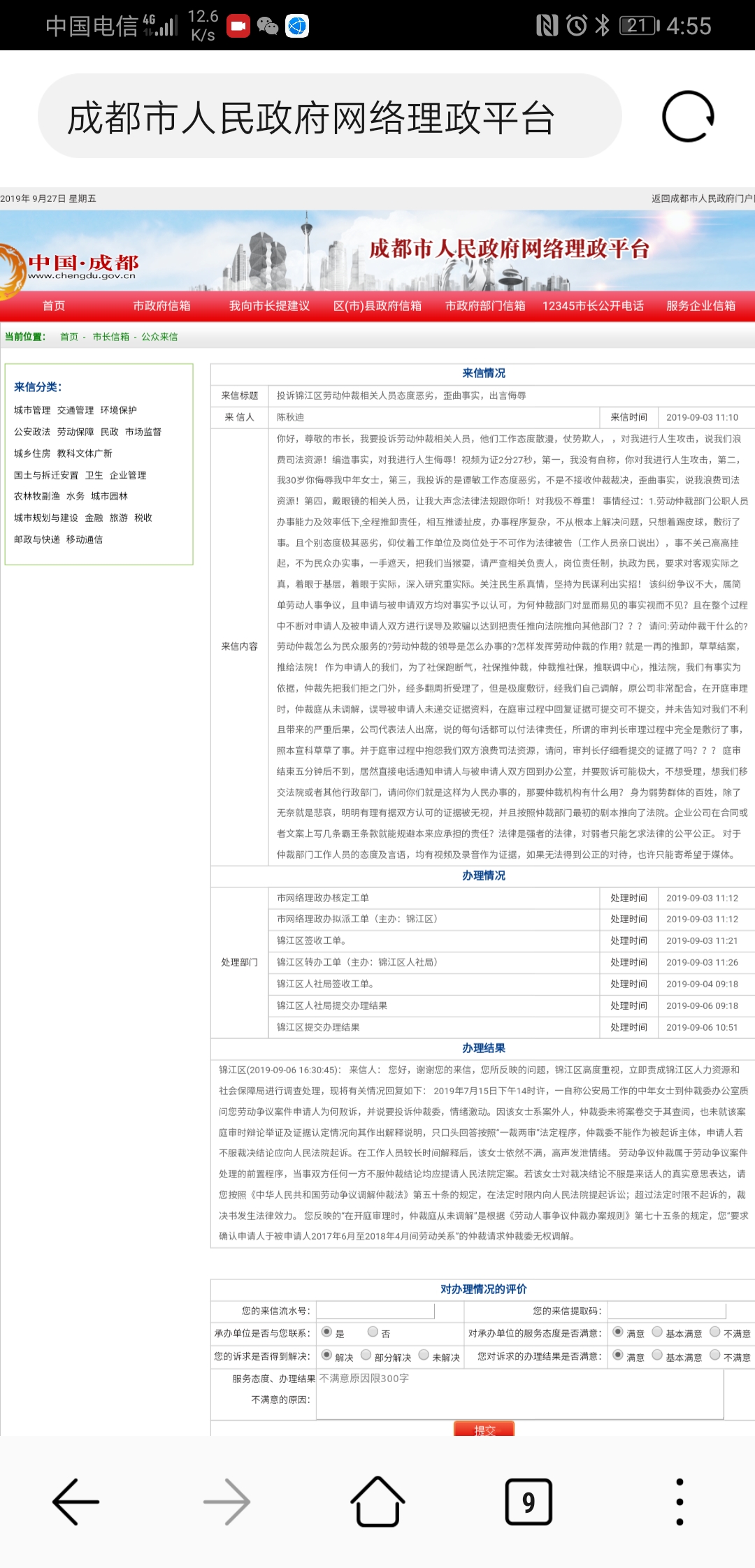 [四川群众呼声] 市政府投诉都是机器人在回复吗? |