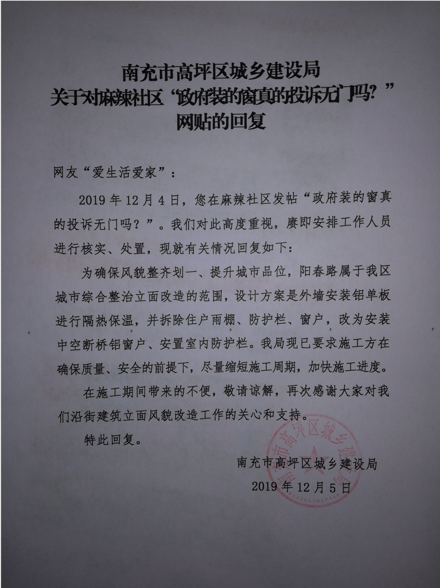 [四川群众呼声] 政府装的窗真的投诉无门吗?[已回复] |