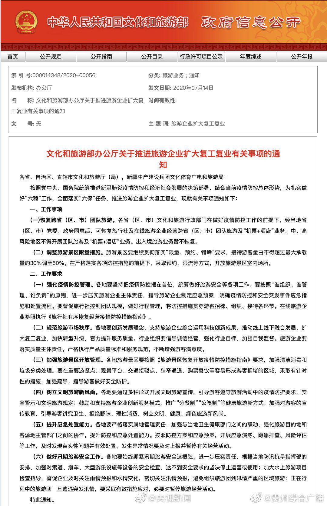 [四川手机报] 文旅部:今起全国恢复跨省区市团队旅游 |