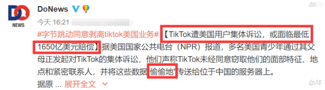 北京时间8月5日,据美国国家公共电台(NPR)报道,多名美国青少年通过其父母正发起对TikTok的集体诉讼,他们声称TikTok未经同意窃取他们的面部特征、地点和紧密联系人,并将这些数据“偷偷地"传送给位于中国的服务器上。