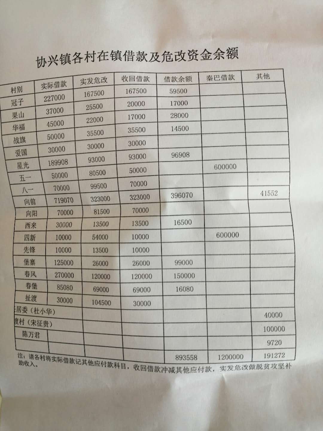 这是协兴镇相关部门公示的“五一村”和“四新村”在镇上的“秦巴借款”,各60万元。