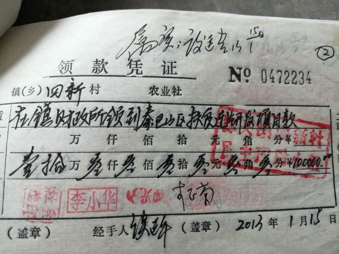 这是四新村有关“秦巴山区扶贫项目”的部分收支凭证。