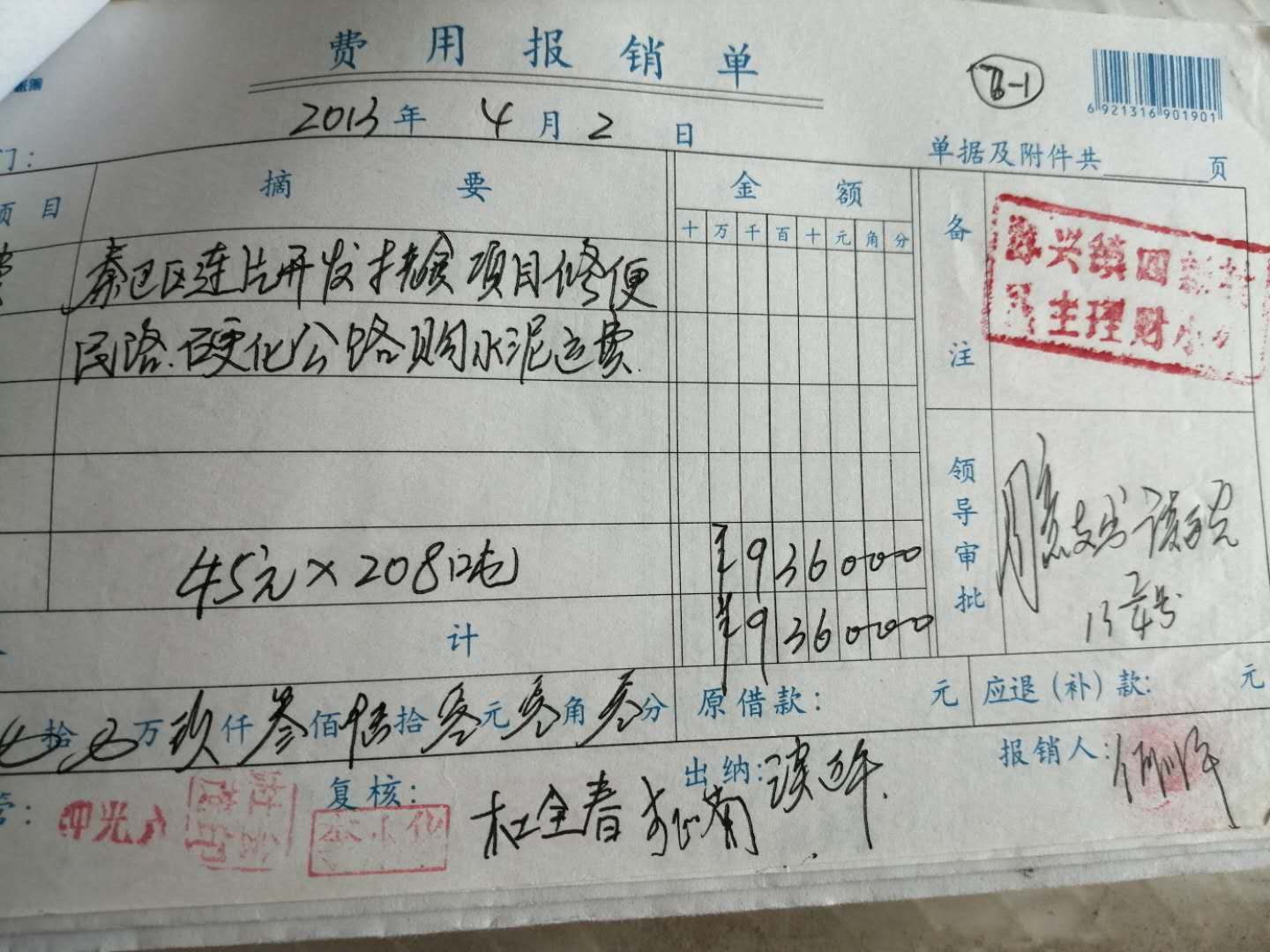 那对于这个项目的实际支出情况又如何呢?根据四新村的内部人员提供的用款支出记录,修这个路就只有购置水泥用了9360元,支付修路民工工资22870元,共计32230元。那结余的567770元哪去了??