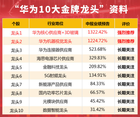 10月重点留意前2名,由于华为产业链持续爆发,公司业绩增长了1000%。一旦三季报发“喜报”,大概率爆发一波行情,是目前是华为供应商里最具潜力的“10倍股”。