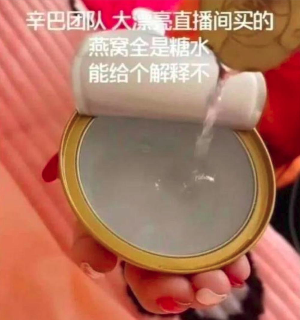 她说,有人在网上发帖说辛巴卖的燕窝是糖水。