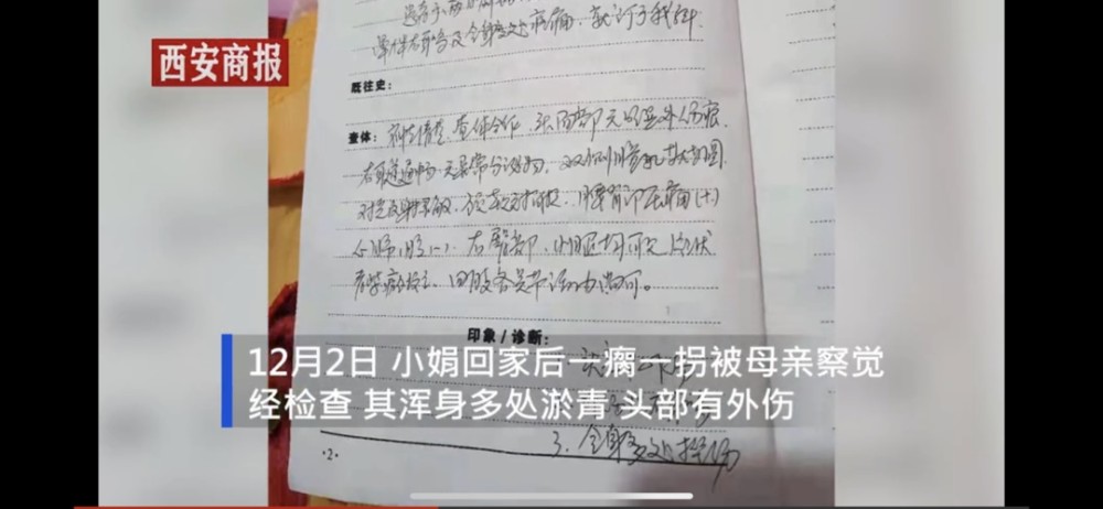小娟的哥哥反映,当时小娟遭到校长殴打,并被逼写下一份“性检讨”。事后,小娟浑身多处淤青、头部有外伤。