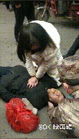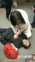 因为没有随身携带医用纱布,这个美女就只能脱下手套,跪在冰冷的地上,以手套作为隔离物,口对口地对老人进行起人工呼吸,用力打通老人的呼吸道。