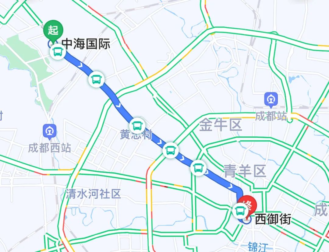 小F居住的高新西区中海国际社区,位于成都市城西主干道羊市街西延线上,距离三环路约1.5公里,是典型的地铁覆盖薄弱区,社区有居民超过5万人,公交出行需求大。