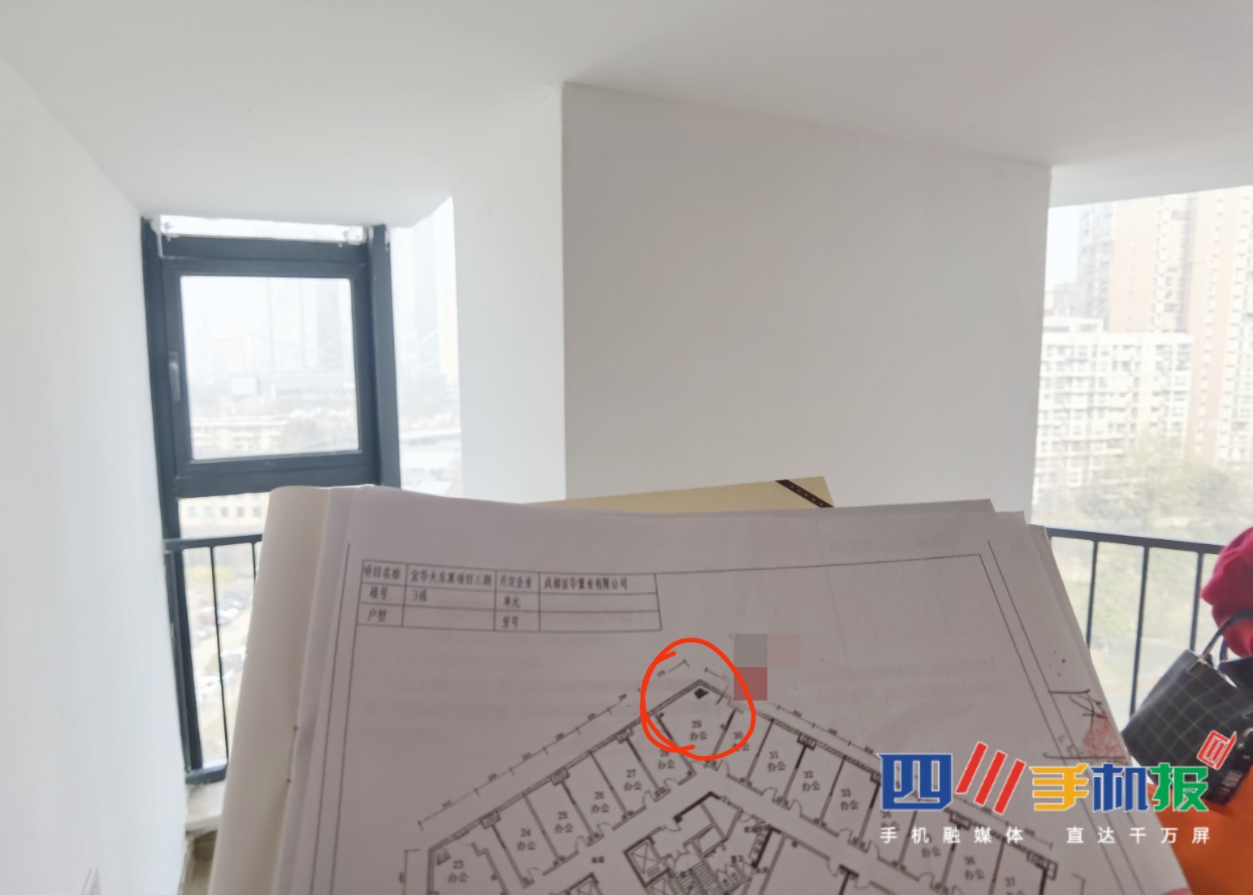 今日上午,四川手机报记者随陈女士一同来到其购买的公寓内,走进房间,一根大白柱子映入眼帘。原本全屋落地窗的房间,因为一根柱子在窗边的阻挡,显得非常不协调,采光也被挡住大半。“之前要知道这里有柱子,谁还买这房子啊?原本想做个婴儿房,现在这点空间什么都做不了。这还是个承重柱,咋办嘛?”陈女士焦急地说。