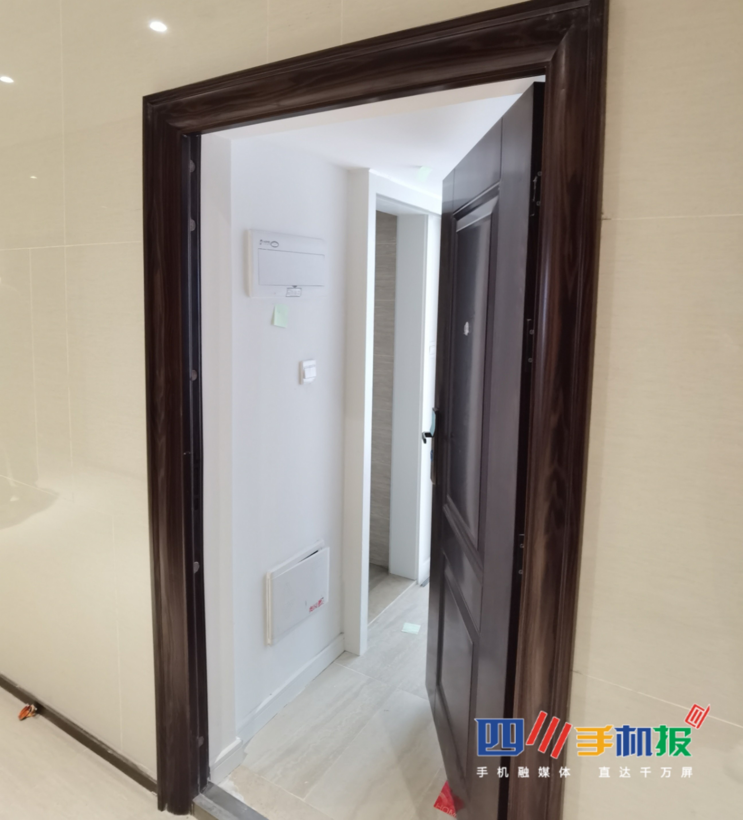 除了四川手机报此前报道的房内惊险“大面积承重柱”、“防盗门锁用银行卡能打开”以外,甚至有业主家里地板“咕嘟咕嘟”往下漏水,墙皮返潮长出蘑菇、弱电箱插座未接地、浴室窄到站入无法转身等。