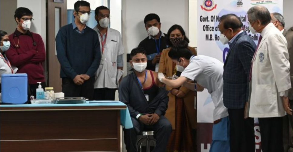 一月中旬,一名印度环卫工人成为第一个接种新冠疫苗的印度人