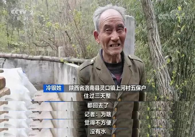 洛南县灵口镇上河村,用来安置五保户的老村部成了附近施工队的住所。五保户之一的冷大爷表示,自己在安置点只住了三天:“不方便,没水”。