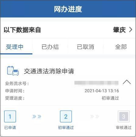 4月13日,袁先生在“交管12123”APP上申请消除上述交通违法记录,目前页面显示申请已通过初审。