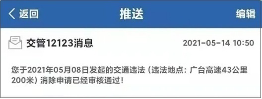 另一位车主也表示,他此前在该路口因类似原因压到路面实线违章,并于5月8日发起交通违法消除申请,5月14日已收到消息称通过审核。