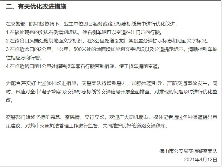 此外,佛山交警还表示,将迅速对全市“电子警察”及交通标志标线等交通信号开展全面排查,对发现的问题及时进行优化整改。