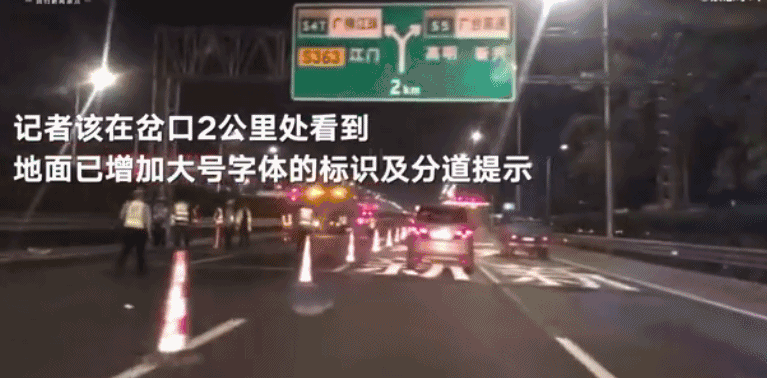 临近岔道口2公里处,地面已增加大号字体的标识及分道提示。