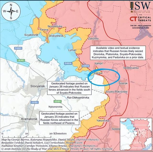 莱曼-克里米纳方向,俄罗斯部队正在谢列布良斯克森林集结,不断向俯瞰西维尔斯基顿涅茨河走廊的高地上的村庄推进。控制这片区域将使他们能够利用火炮和无人机对乌克兰后方区域发起攻击。